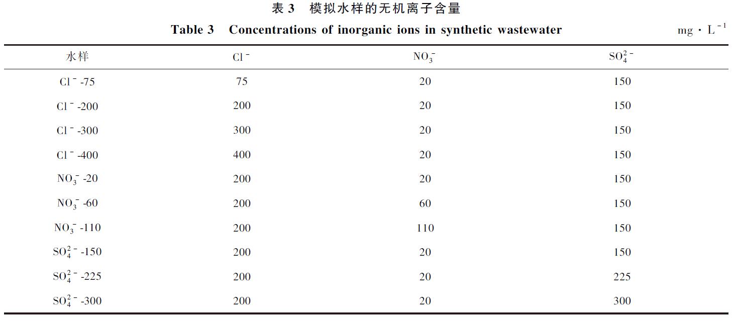 生物处理出水中的3种无机离子的浓度如表2所示。