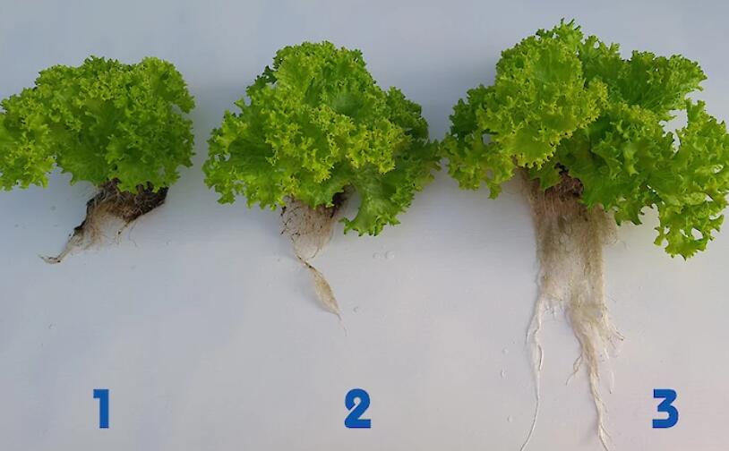 在4周期间和每周结束时,对各组生菜的重量进行评估。在第1周和第2周,各组的体重没有显著差异,但在第3周和第4周,实验组的体重与对照组相比有显著增加。例如,第四周结束时,实验组的体重为233.7 g,对照组1的平均体重为173.26 g,对照组2的平均体重为129.21 g。这意味着,接受纳米气泡含氧水的那一组比对照1重38.8%,比对照2重80%。同时,纳米气泡处理组的根长明显变长(图2)。